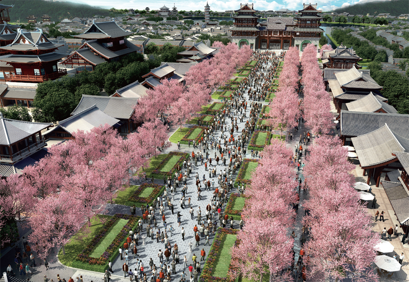 此外古鎮將大唐文化與湖南本土文化充分展示,對花鼓戲、皮影戲、唐樂舞、長沙彈詞等非遺傳承進行保護與再現。并且古鎮還推出《全時段街景秀》和《景區巡游》兩大特色街演。